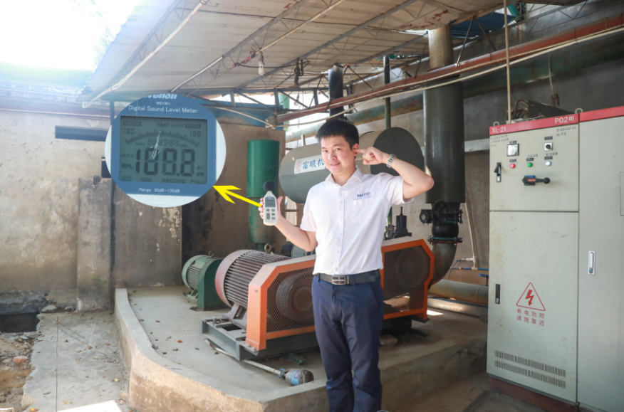 ? ? ? ?經(jīng)過雷茨技術(shù)人員多次的現(xiàn)場勘察,通過測試記錄現(xiàn)場數(shù)據(jù),計算一個精確的解決方案確保滿足客戶需求。原紙業(yè)廢水處理現(xiàn)狀如下:采用一用一備兩臺傳統(tǒng)羅茨鼓風(fēng)機進行污水處理鼓風(fēng)曝氣,電機的銘牌功率是90KW,根據(jù)現(xiàn)場原啟動器的實際顯示電流以及鉗形電流表測試顯示,這臺風(fēng)機基本上接近了滿載電流,風(fēng)機負(fù)荷非常大,現(xiàn)場噪音測試顯示高達105分貝,遠遠超過了《工業(yè)噪音標(biāo)準(zhǔn)90分貝》,對人體產(chǎn)生的影響非常大。
